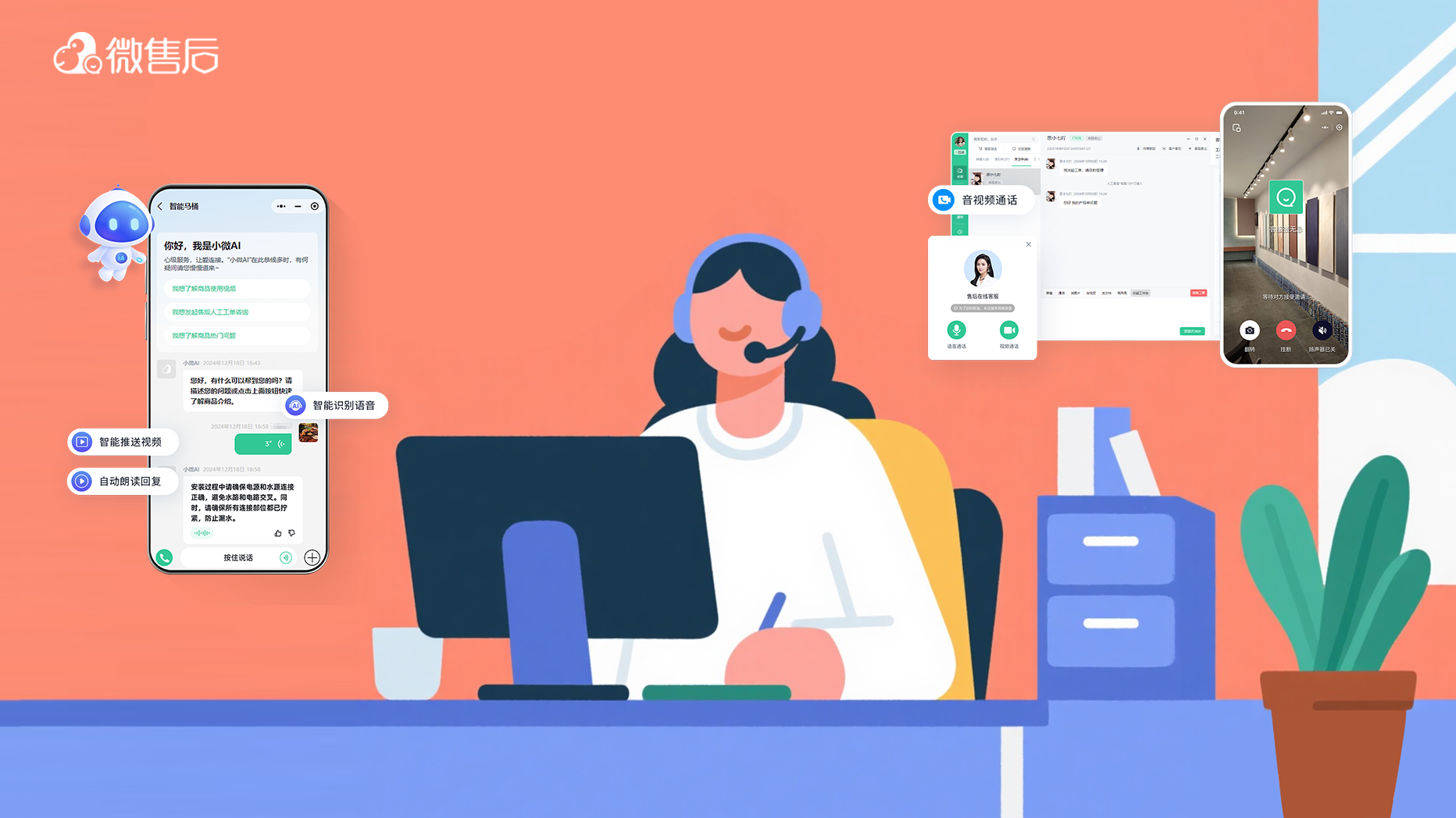 微售后深度集成千问和DeepSeek等大模型,可针对卫浴行业特殊语境进行训练。企业只需上传电子说明书与维修手册,AI便能构建品牌专属知识库。面对客户关于“智能马桶故障代码”、“冲水异常”等技术咨询,AI智能客服能实现7×24小时精准秒回,拦截80%以上的重复性问题,大幅释放人工压力。