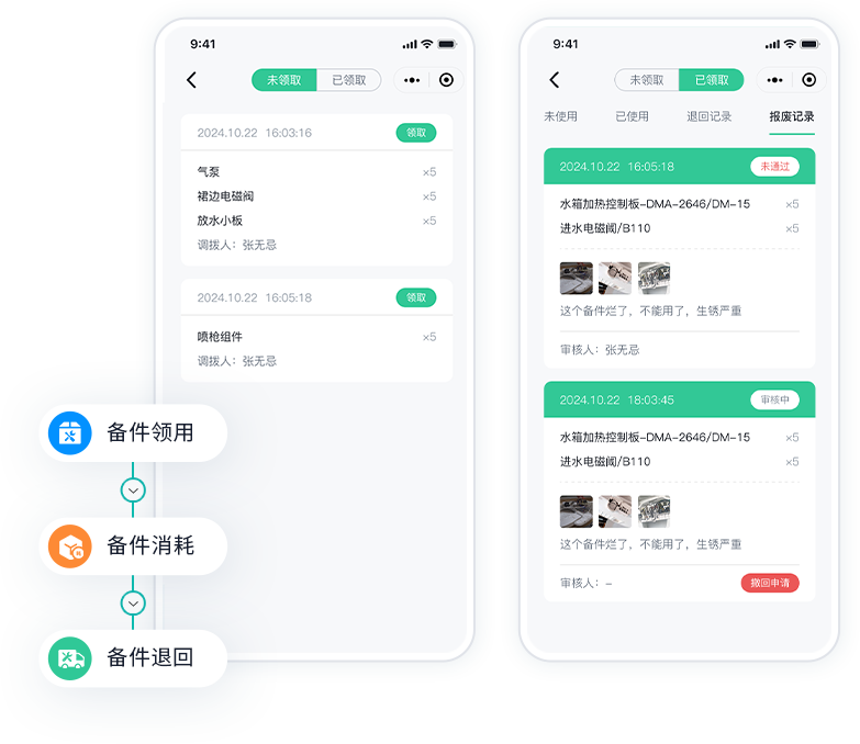 企业自有师傅可便捷申请备件调拨,系统详细记录每一步操作。领